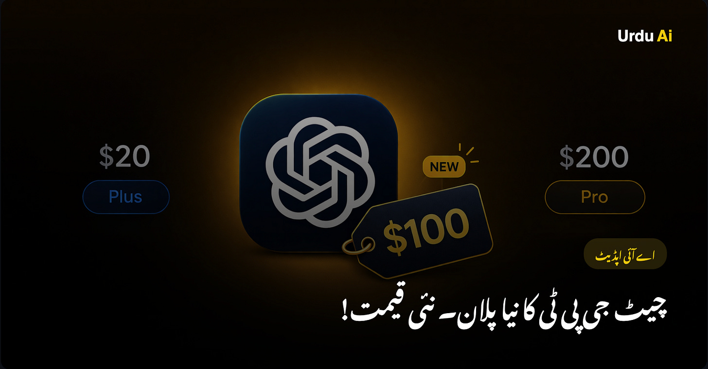اوپن اے آئی نے ChatGPT Pro کا نیا 100 ڈالر ماہانہ پلان متعارف کرایا ہے جو خاص طور پر Codex کے بھاری استعمال کے لیے بنایا گیا ہے۔ یہ پلان Plus سے 5 گنا زیادہ Codex استعمال دیتا ہے اور 31 مئی تک خصوصی پروموشن میں 10 گنا زیادہ استعمال ملے گا۔ مکمل یہاں تفصیل یہاں پڑھیں